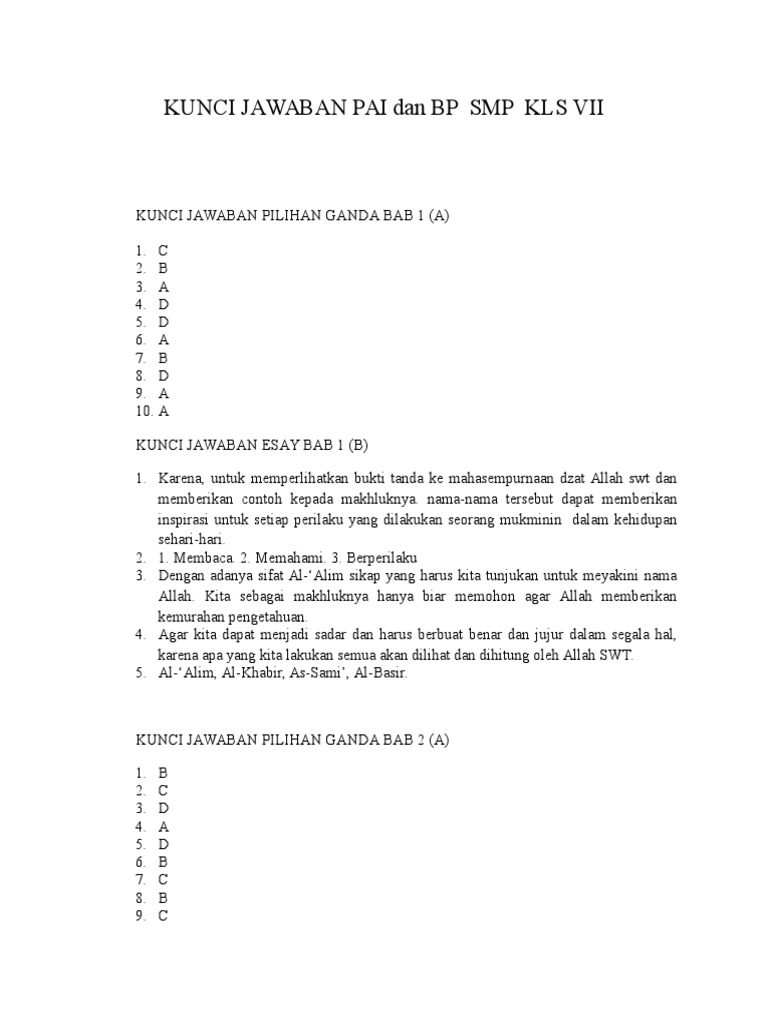 Soal Latihan Pai Smp Kelas 7 Bab 1 Kunci Jawaban Materi Ajar Sd