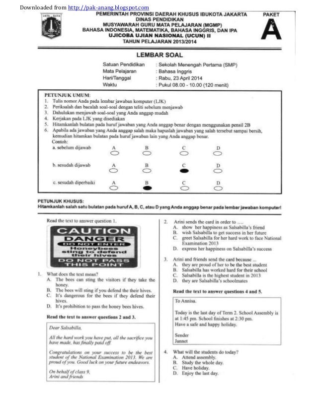 Soal Dan Jawaban Ucun 2 Bahasa Indonesia Smp Tahun 2018 2019