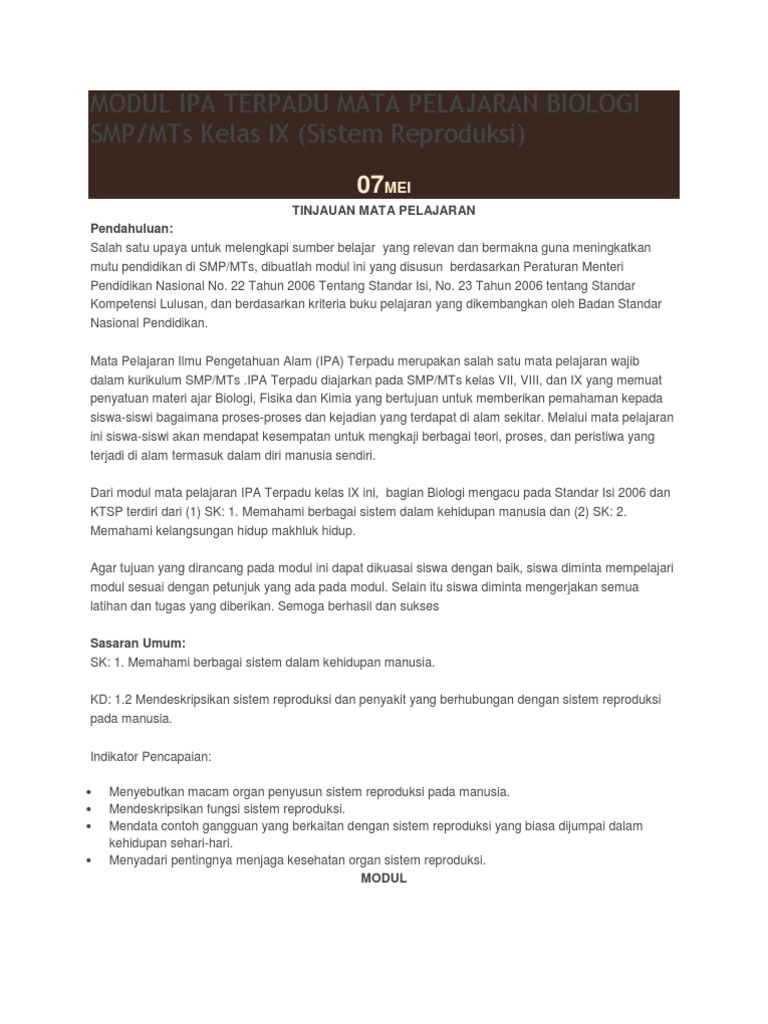 Doc Modul Ipa Terpadu Mata Pelajaran Biologi Smp Am Rizal