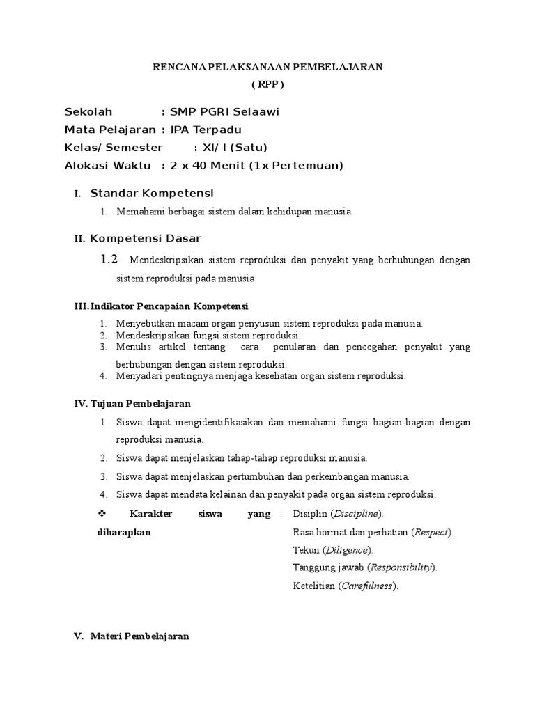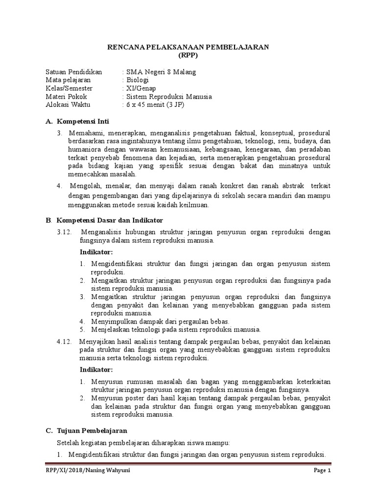2 8 Contoh Rencana Pelaksanaan Pembelajaran Rpp Sistem Reproduksi