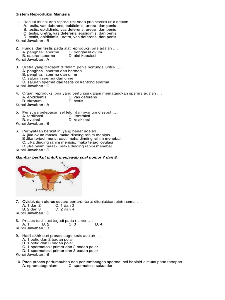 Kumpulan Soal Dan Jawaban Tentang Sistem Reproduksi