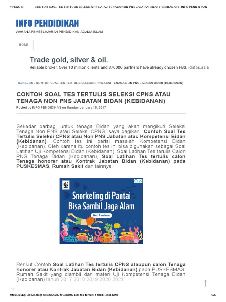 Contoh Soal Skb Bidan 2018 Dan Kunci Jawabannya
