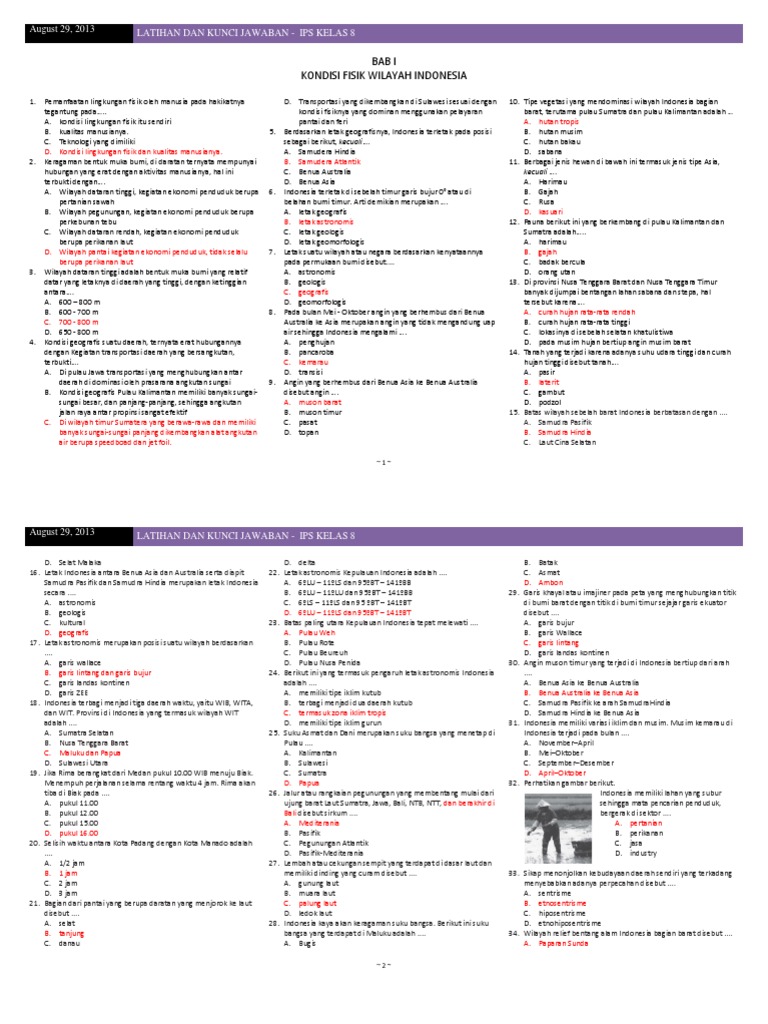 195217806 Soal Ips Kelas Viii Kondisi Fisik Wilayah Indonesia Docx