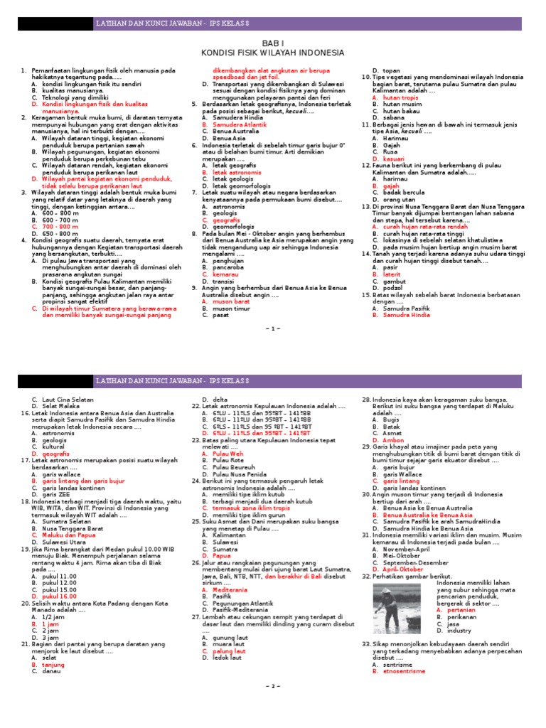 Soal Ips Kelas Viii Kondisi Fisik Wilayah Indonesia