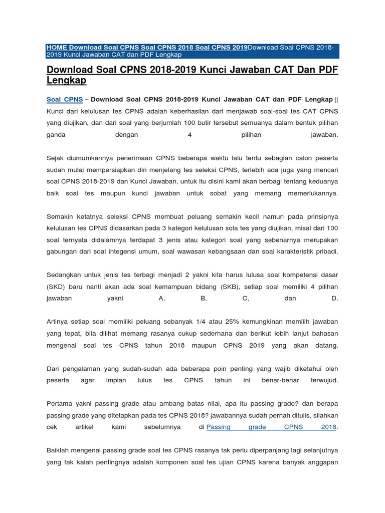 Soal Tes Cpns 2018 Dan Kunci Jawaban Pdf