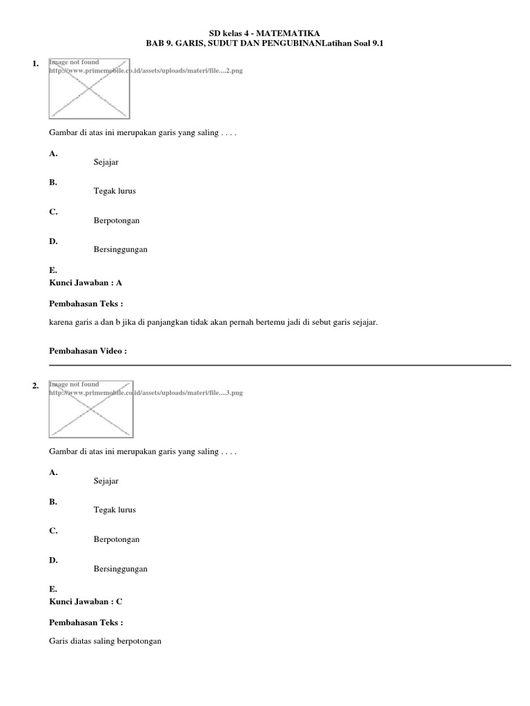 Latihan Soal Sd Kelas 4 Matematika Bab 9 Garis Sudut Dan