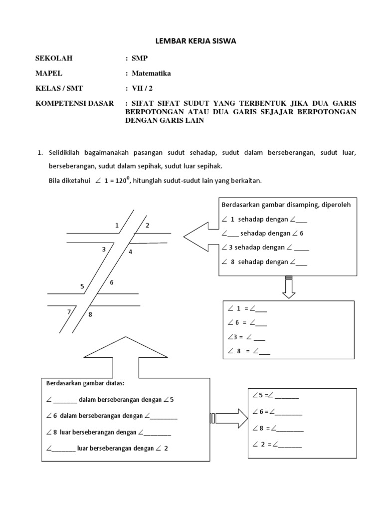 Contoh Soal Garis Dan Sudut Kelas 7 Semester 2 Kumpulan Soal