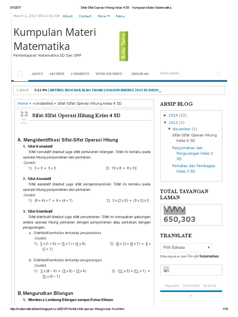 Sifat Sifat Operasi Hitung Kelas 4 Sd Kumpulan Materi Matematika
