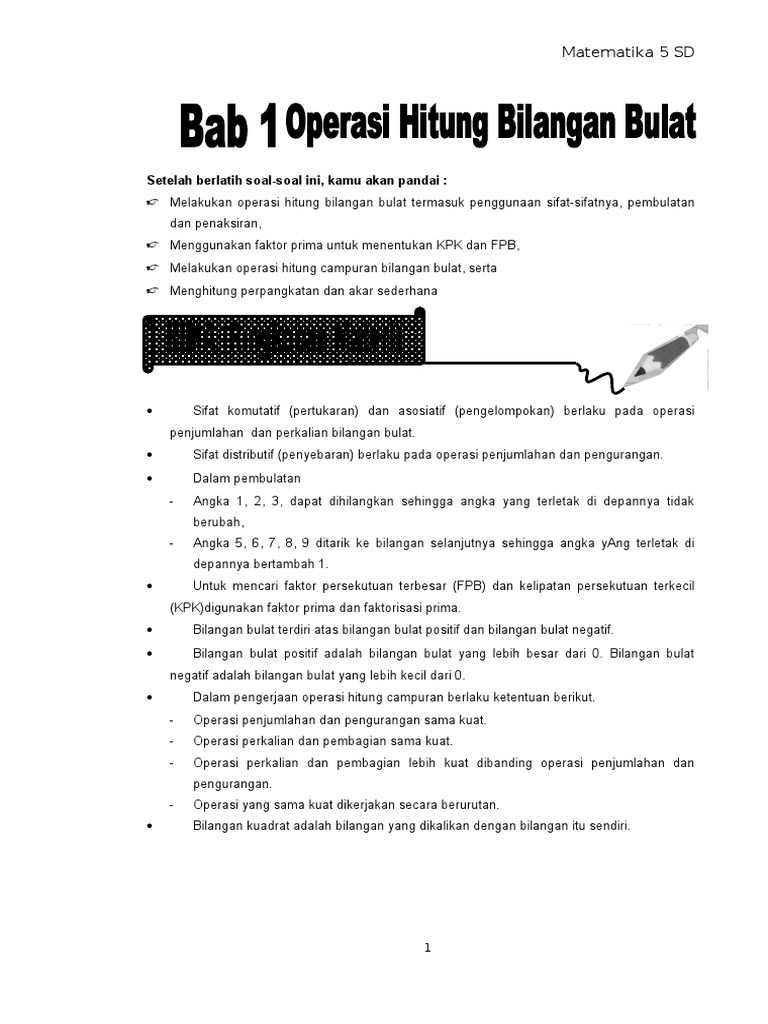 Sifat Sifat Pengerjaan Hitung Pada Bilangan Bulat Kelas 5 Sd