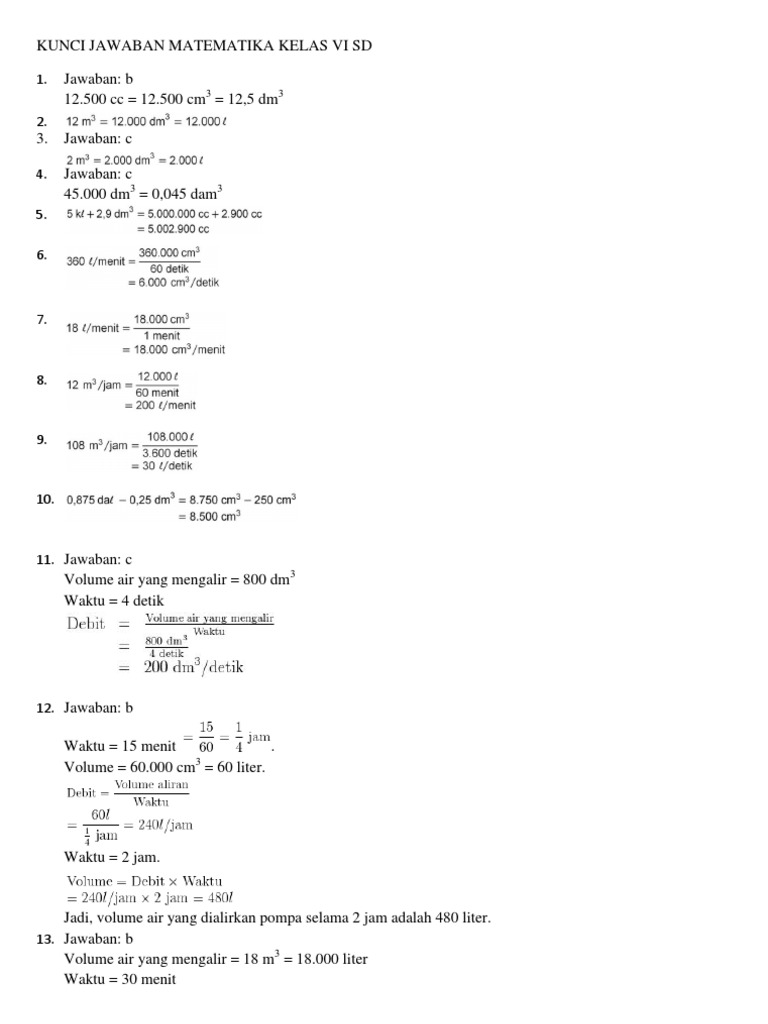 Download Soal Matematika Kelas 6 Sd Bab 2 Debit Dan Kunci Jawaban