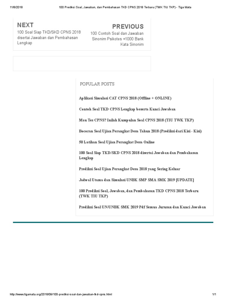 100 Prediksi Soal Jawaban Dan Pembahasan Tkd Cpns 2018 Terbaru