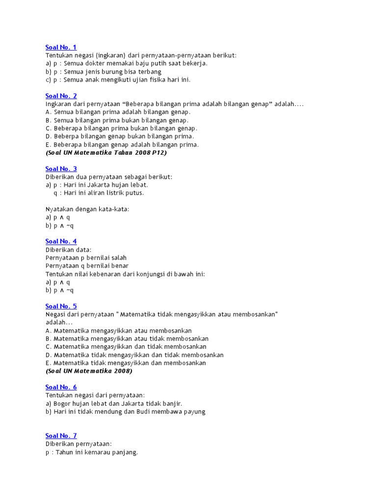 Doc Contoh Soal Latihan Logika Matematika Dan Pembahasan Lengkap