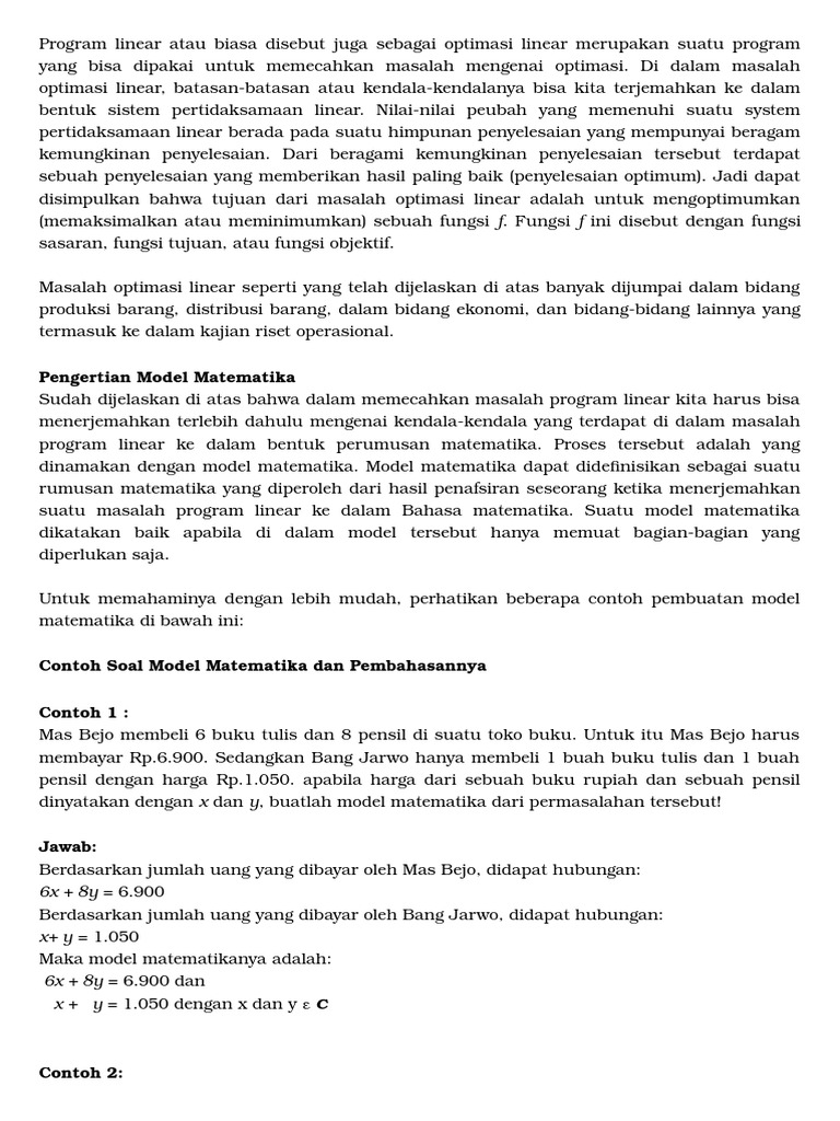 Perhitungan Program Linier Lengkap Dengan Contoh Soal