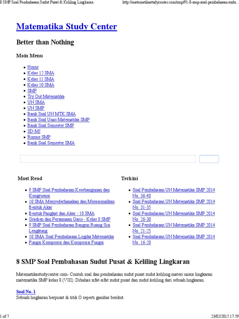 8 Smp Soal Pembahasan Sudut Pusat Keliling Lingkaran Pdf