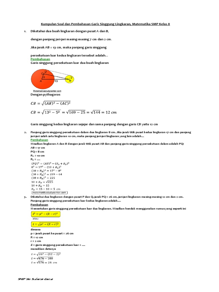 Kumpulan Soal Dan Pembahasan Garis Singgung Lingkaran