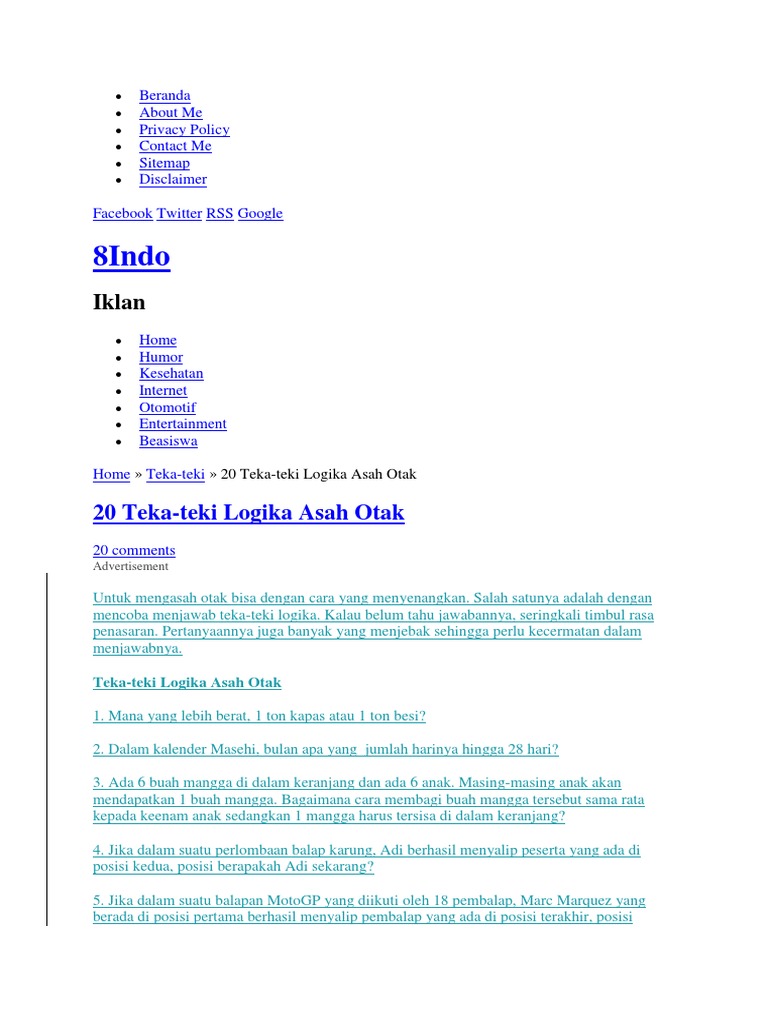 Teka Teki Asah Otak Dan Jawabannya