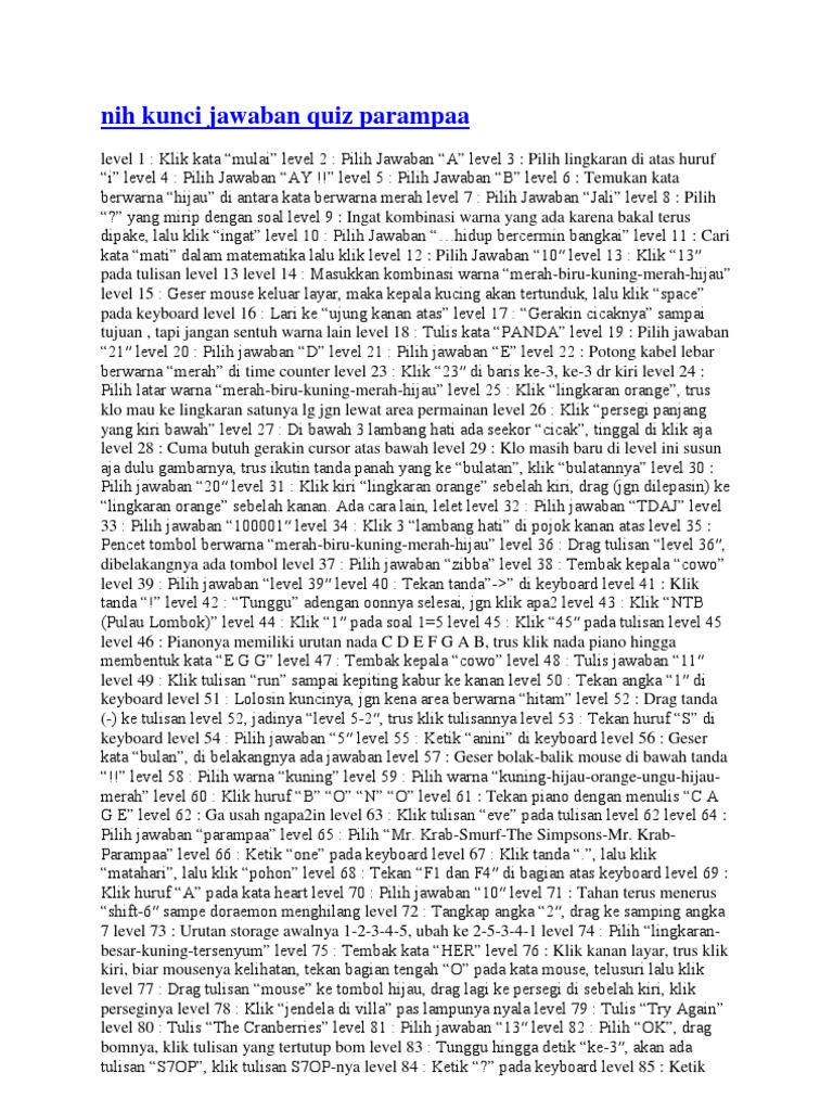 Kunci Jawaban Quiz Parampaa 2 Level 100 202 Pdf Document