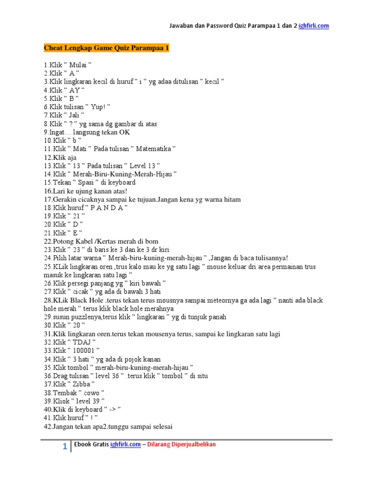 Jawaban Dan Password Quiz Parampaa 1 Dan 2 Ighfirli