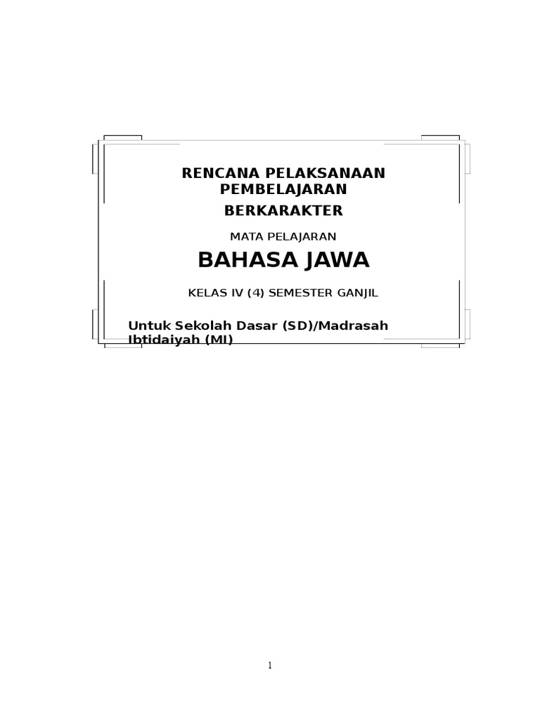 Rpp Bahasa Jawa Kelas 1 Semester 1 Pasinaon 1