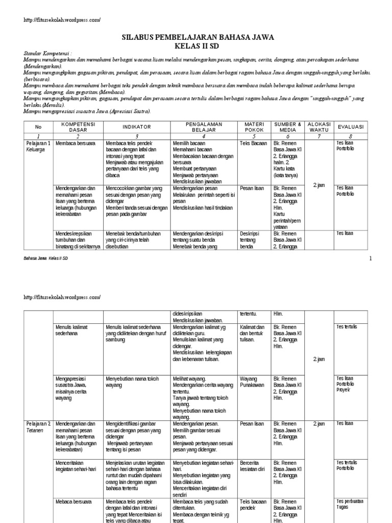 Silabus Pembelajaran Bahasa Jawa Kelas Ii Sd Pelajaran 1
