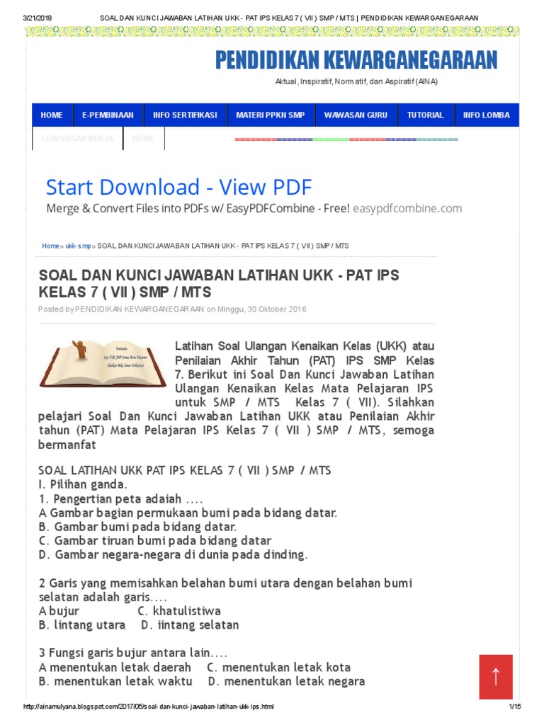 Soal Dan Kunci Jawaban Latihan Ukk Pat Ips Kelas 7 Vii Smp