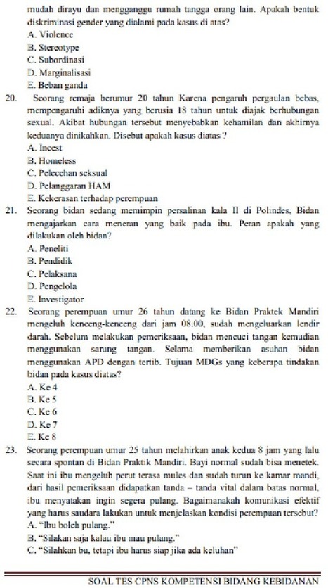 Contoh Soal Cpns Bidan Terampil Dan Jawabannya 2019