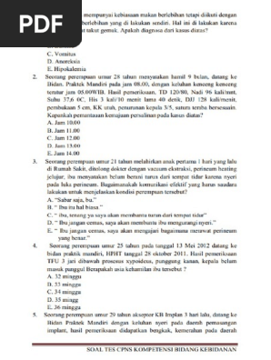 Soal cpns kebidanan pdf. Seleksi kompetensi dasar skd selalu menjadi acuan pemerintah dalam menyeleksi penerimaan cpns setiap tahunnya selain seleksi kompetensi bidang skb tidak terkecuali. Contoh soal tes tertulis seleksi cpns atau non pns jabatan atau kompetensi bidan kebidanan. Contoh soal cpns 20192020 cat online dan pdf buat latihan cpnsnewscom.