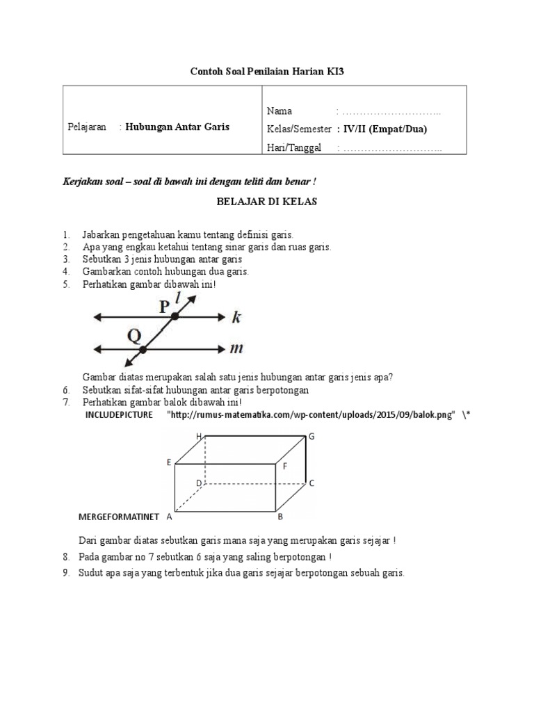 Contoh Soal Garis Berpotongan Contoh Soal Pelajaran Anak Sd