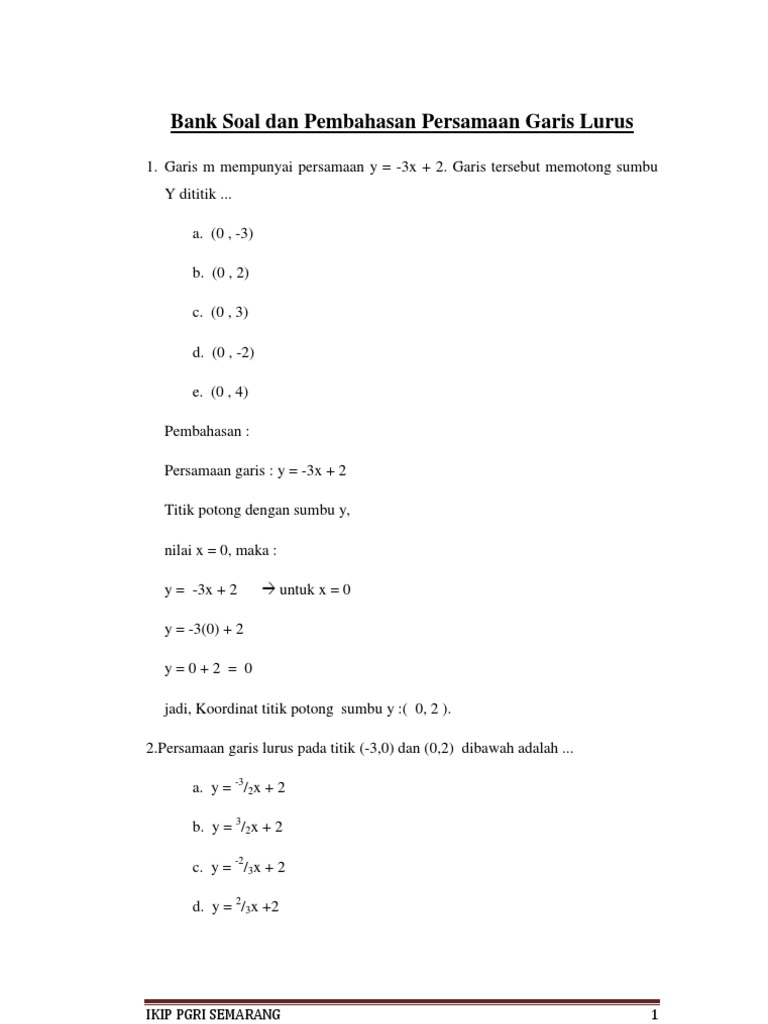 Bank Soal Dan Pembahasan Persamaan Garis Lurus