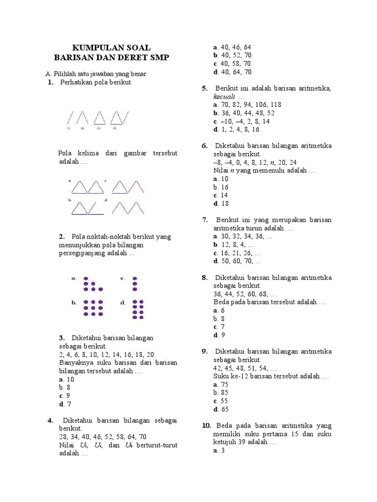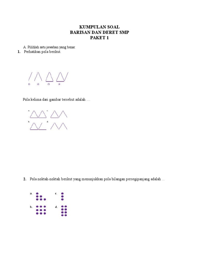 Pola Bilangan Barisan Dan Deret Vii Smp Soal
