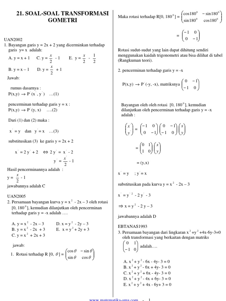Soal Transformasi Geometri Dengan Jawaban Dan Pembahasan Materi