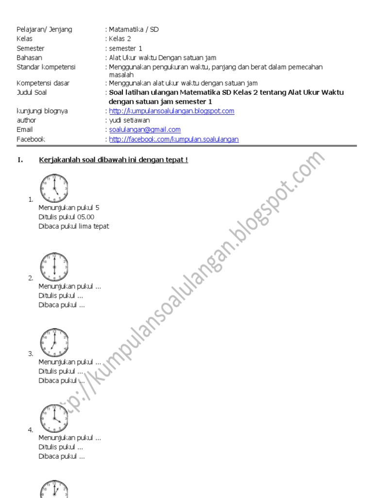 Soal Latihan Matematika Sd Kelas 2 Tentang Jam