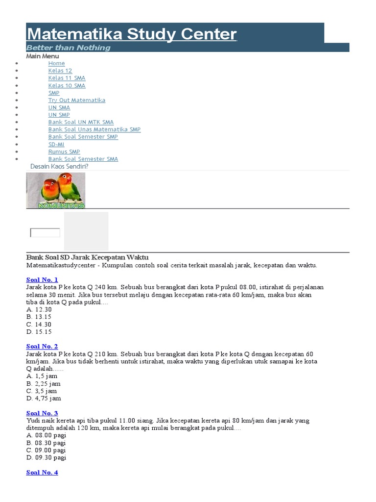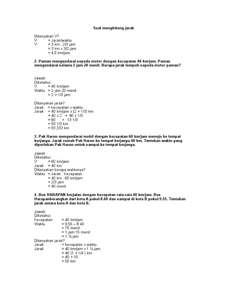 Contoh Soal Matematika Jarak Waktu Dan Kecepatan Siposter Post