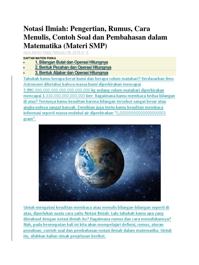 Notasi Ilmiah Pengertian Rumus Contoh Soal Dan Cara Menulisnya