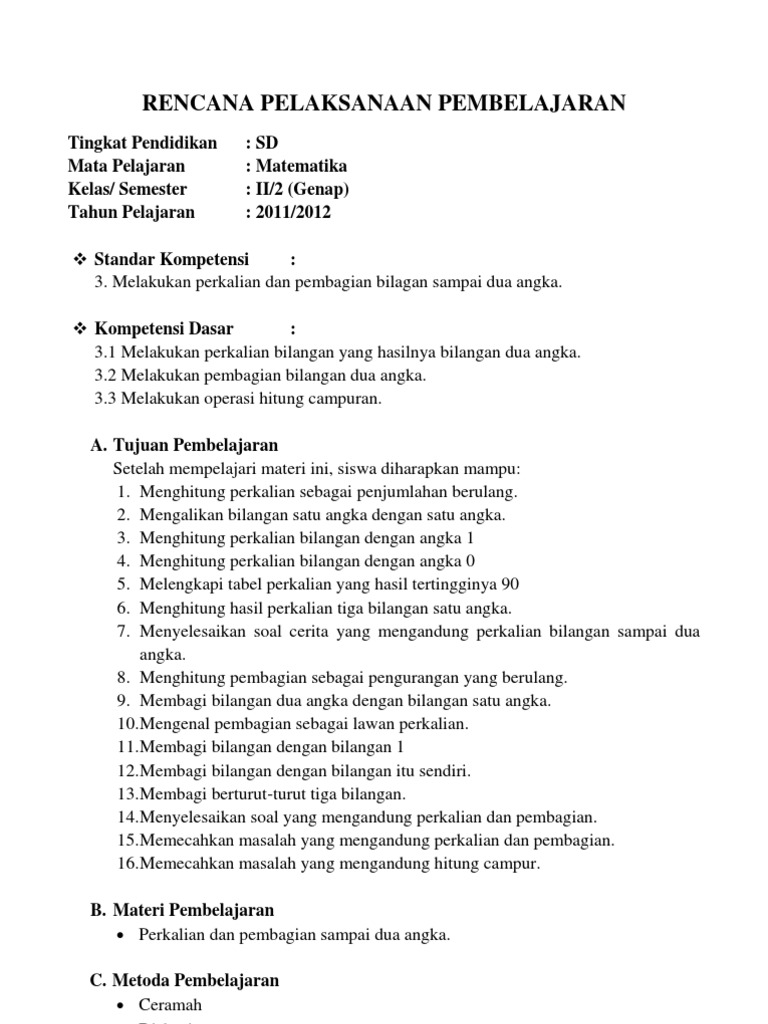 Rpp Matematika Kelas 3 Sd Melakukan Operasi Hitung Campuran