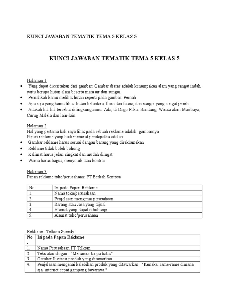 Soal Tema 1 Kelas 5 Dan Kunci Jawaban