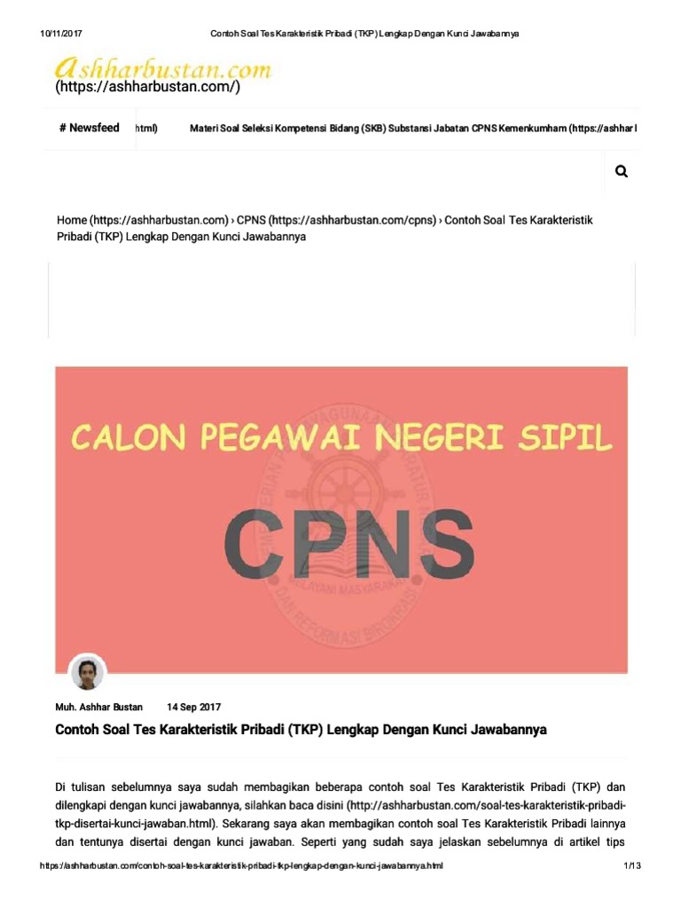 Edoc Tips Contoh Soal Tes Karakteristik Pribadi Tkp Lengkap Dengan Pdf