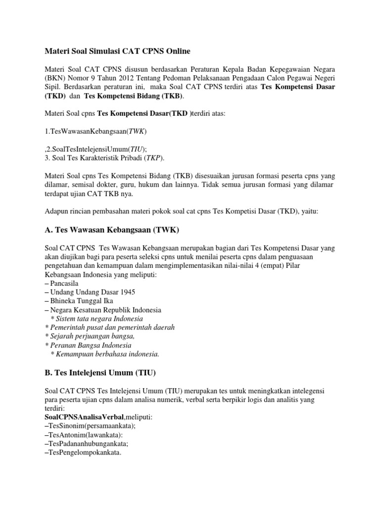 Latihan Soal Tes Cpns Soal Cat Cpns Tes Intelegensi Umum Tiu Pdf