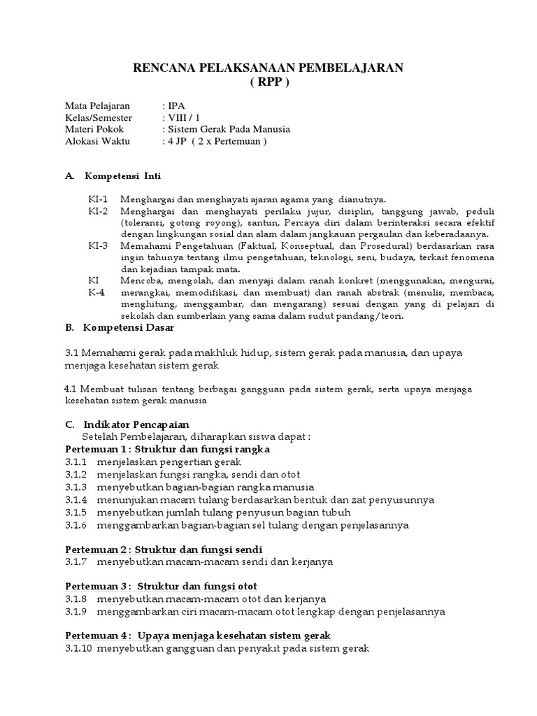 Rpp Sistem Gerak Pada Manusia Siap