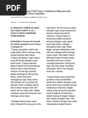 Soal Tematik Kelas 5 Sd Tema 1 Subtema 2 Manusia Dan Lingkungan Dan
