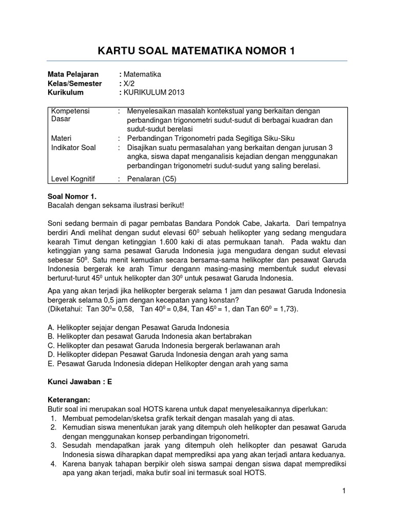 Contoh Soal Matematika Hots Docx