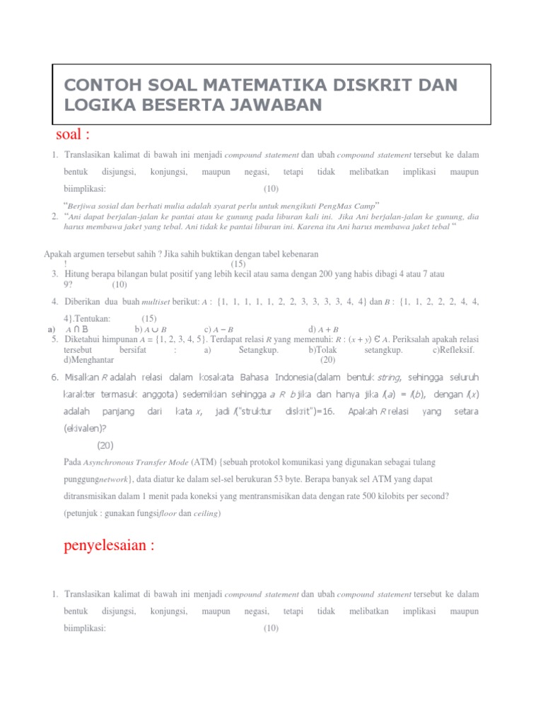 Contoh Soal Matematika Diskrit Dan Logika Beserta Jawaban