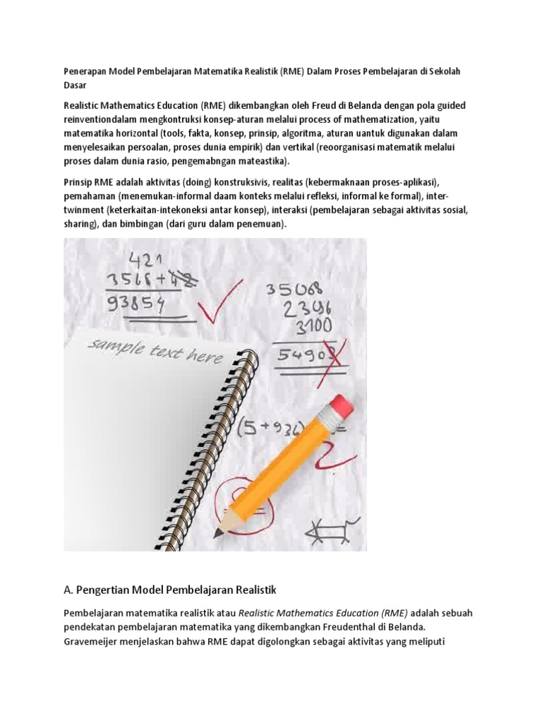 Penerapan Model Pembelajaran Matematika Realistik Rme Dalam Proses