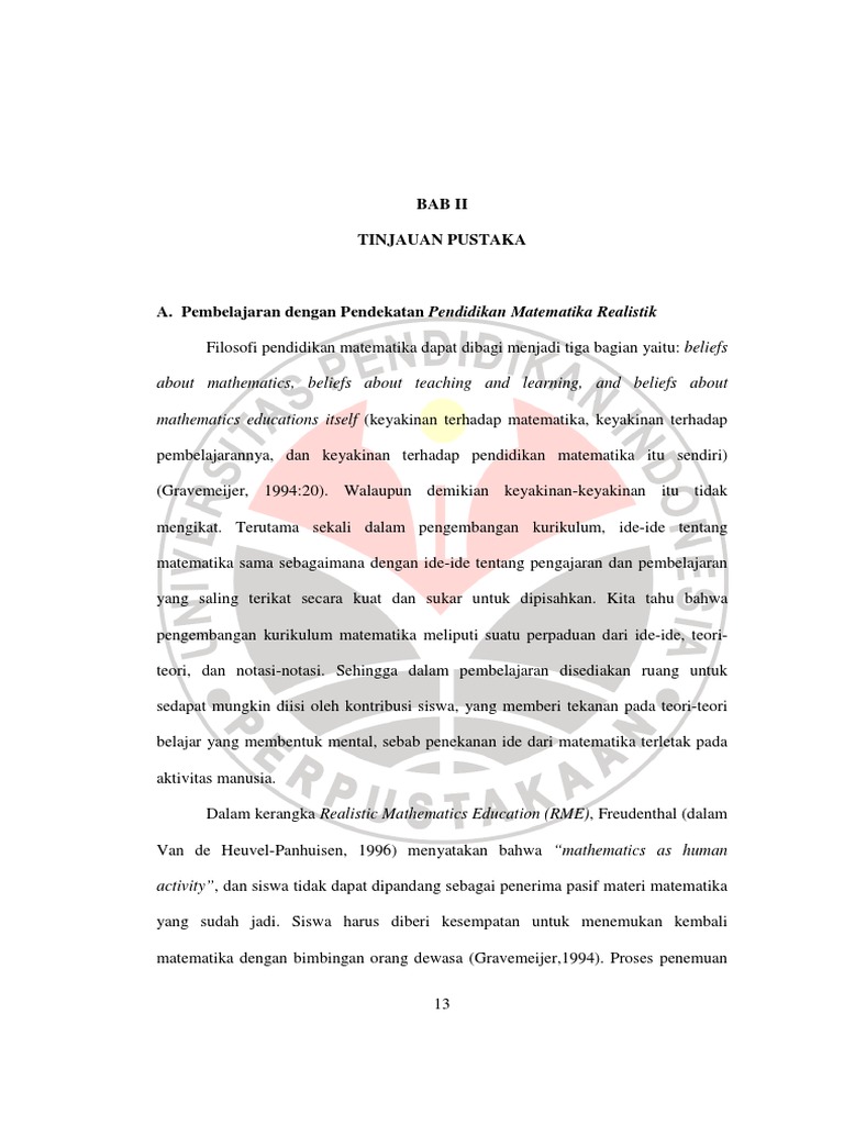 11 Bab Ii Kajian Pustaka A Pembelajaran Matematika Realistik